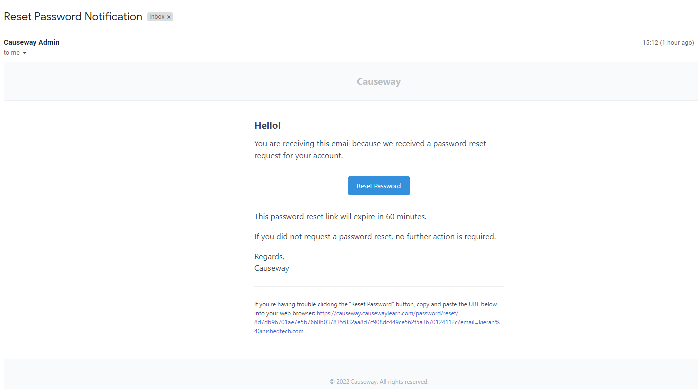 You should then receive a message like this to reset your password